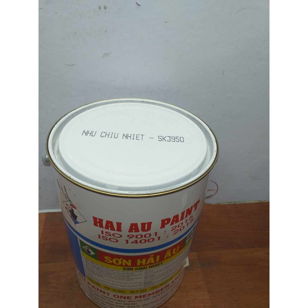 Sơn Chịu nhiệt 300 độ Hải Âu màu Bạc 5 lítSơn Chịu nhiệt 300 độ C Hải Âu SK3. 950 màu nhũ bạc được sản xuất trên cơ sở nhựa Silicolphene kết hợp nhựa Acrylic, bột màu nhũ, phụ gia đặc biệt.
