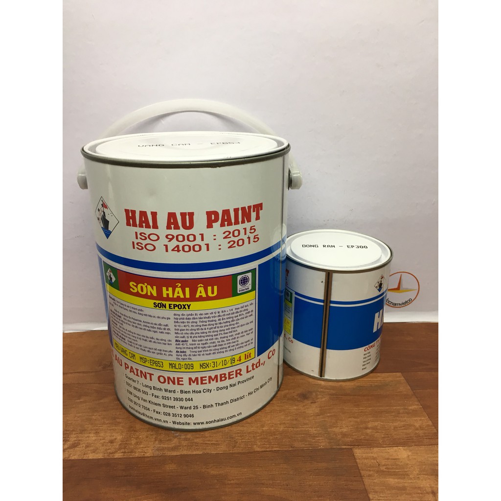 Sơn Epoxy Hải Âu màu vàng cam EP 653 5L/bộSơn Epoxy Hải Âu là sơn hai thành phần: Phần A: Nhựa epoxy, bột màu, dung môi hữu cơ, các phụ gia đặc biệt. Phần B: Nhựa Đóng rắn polyamide, Amine và các dẫn xuất.