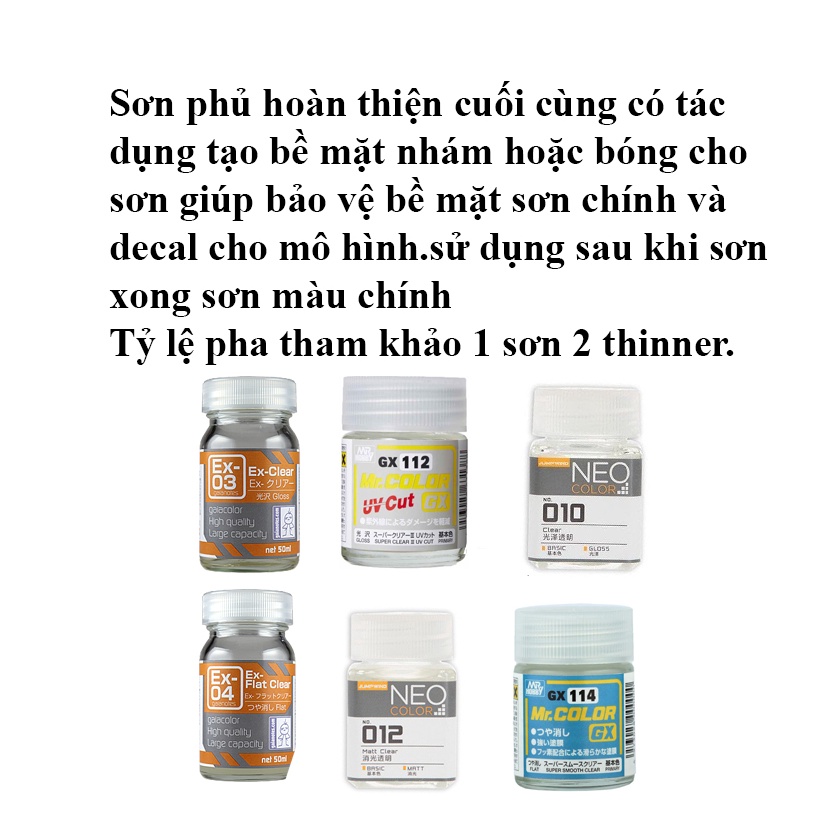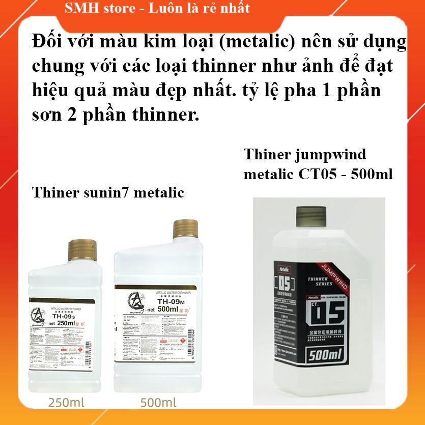 Hướng dẫn sử dụng : Pha 1 phần sơn 2 phần thinner để hòa tan. có thể dùng thinner của các hãng sunin7, jumpwind, mr hobby , gaia....