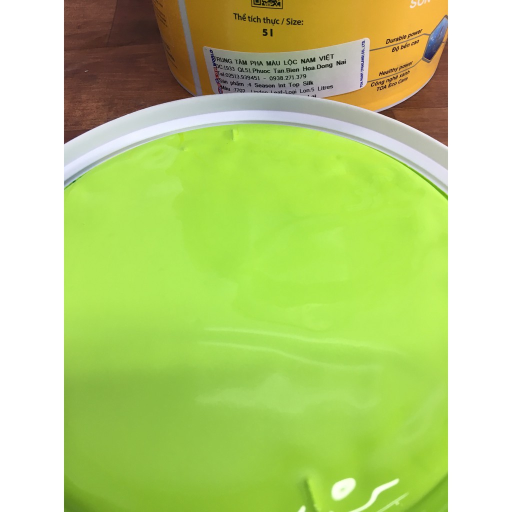 Nhà Cửa & Đời Sống > Dụng cụ & Thiết bị tiện ích > Sơn nhà cửa || Sơn nước nội thất TOA 4 Seasons Interior Top Silk MÀU XANH LÁ MẠ 7702 5LCòn hàng