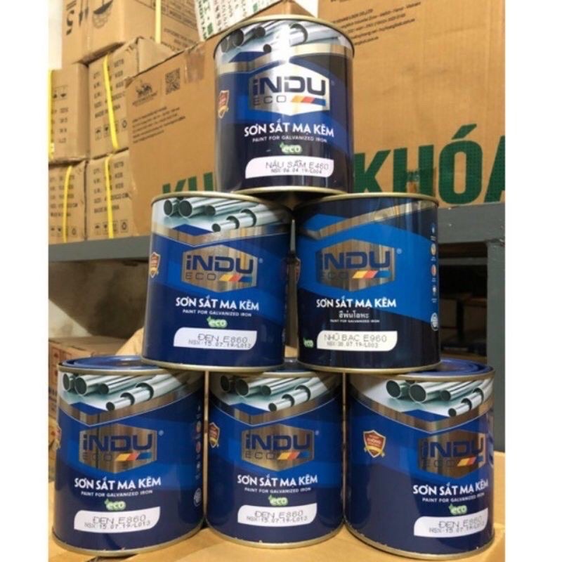 Sơn sắt mạ kẽm INDU hộp 2,5kg bảo hành không bóng tróc- tặng kèm chổi sơn