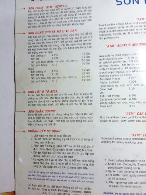 Giới thiệu Sơn xịt ATM.400ml màu...