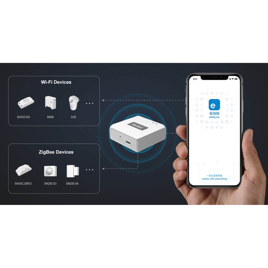 Bộ trung tâm Sonoff Zigbee Bridge.Dùng App eWelink.