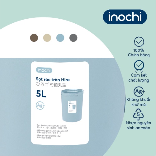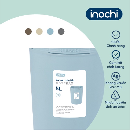 Nhà cửa & Đời sống > Dụng cụ chăm sóc nhà cửa > Thùng rác || Sọt rác Inochi - Hiro 5L màu Xanh/Ghi/NâuCòn hàng