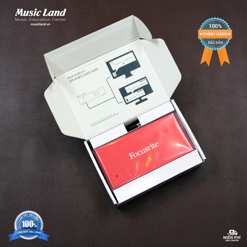 - Sản phẩm bao gồm : 1 Soundcard Focusrite 2i2 + 1 cáp kết nối + 1 Sách hướng dẫn + 1 phiếu bảo hành.