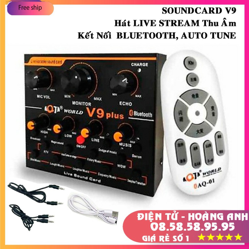 Soundcard V9 plus có BLUETOOTH auto tune live livestream (Mic AT100-AQ220-Bm900-S8-V8-V9-V10)