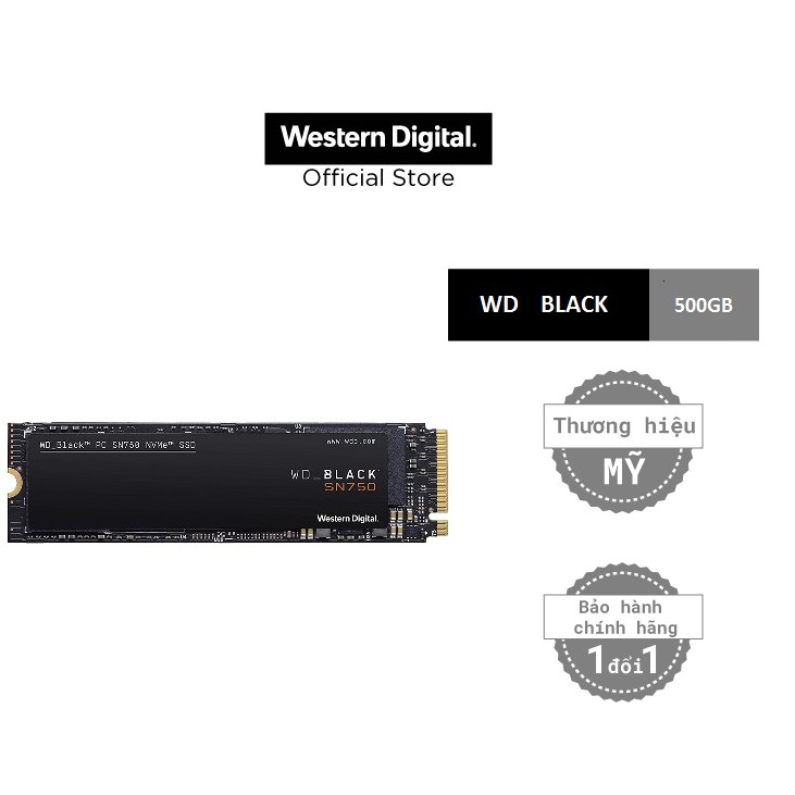 SSD Western Digital Black SN750 PCIe Gen3 x4 NVMe M.2 500GB WDS500G3X0CNhà sản xuất: Western Digital