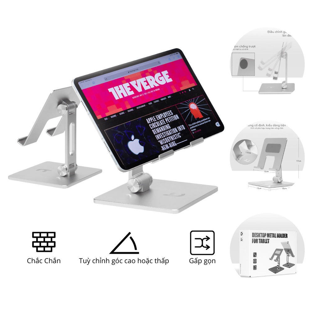 Stand/Giá Đỡ Mọi iPad Nhôm Cao Cấp Có Thể Nâng Độ Cao, Chỉnh Góc Nghiêng Lucas MT900Chiếc Stand với chất liệu nhôm cao cấp, thiết kế tinh xảo và quan trọng hơn cả là bạn có thể sử dụng với mọi loại iPad từ iPad Mini tới chiếc iPad lớn nhất là 12.9 inch thế hệ mới nhất. Khắc phục được nhiều nhược điểm của những những sản phẩm giá đỡ cho iPad trước của Lucas thường không sử dụng được cho iPad 12.9 nên shop đã cho ra mắt sản phẩm mới nhất với nhiều tính năng vượt trội.