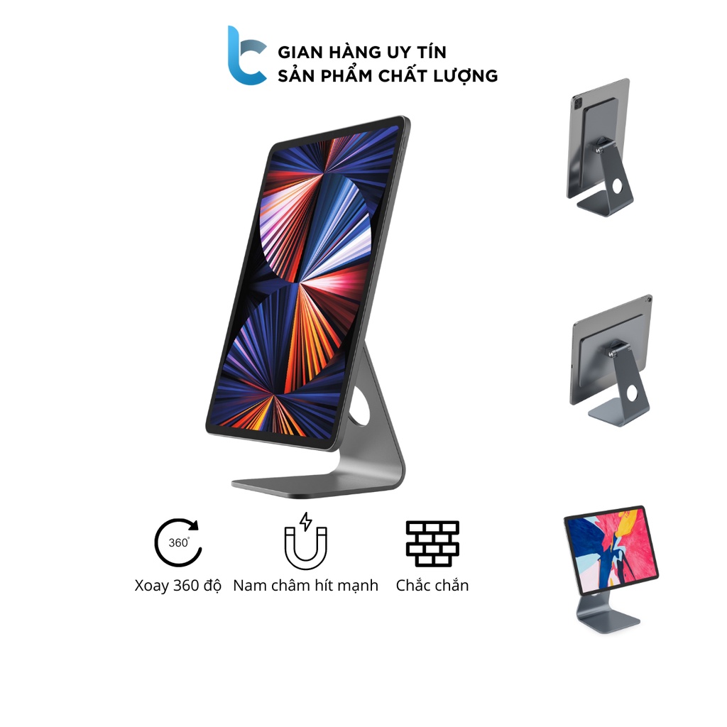 - Sử dụng nam châm để giữ iPad rất chắc chắn, xoay được 360 độ xoay ngang, dọc, trước sau, giúp sử dụng iPad nhiều góc phù hợp với các tư thế, nhu cầu sử dụng khác nhau.