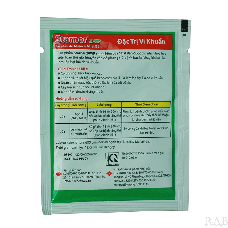 STARNER 20WP - PHÒNG NGỪA VI KHUẨN HỮU HIỆU CHO CÂY TRỒNGSẢN PHẨM TỪ NHẬT BẢN
