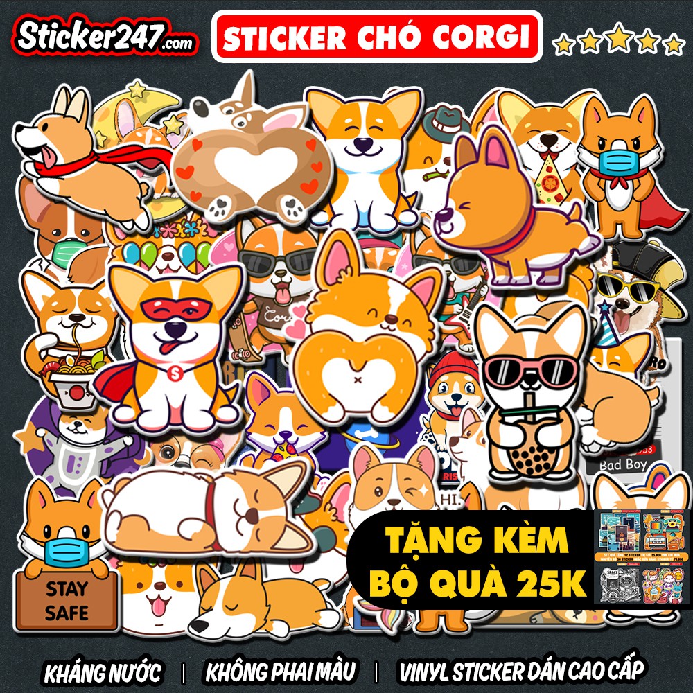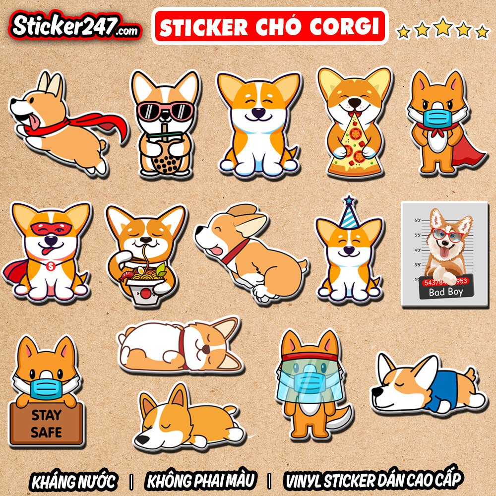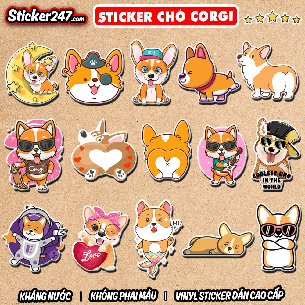 Sticker Corgi chống nước 🌈𝑭𝒓𝒆𝒆𝒔𝒉𝒊𝒑 sticker hình dán laptop, điện thoại, đàn guitar, dán mũ bảo hiểm, vali - Sticker247🌟🌟 KHÔNG TRÙNG HÌNH 🌟🌟