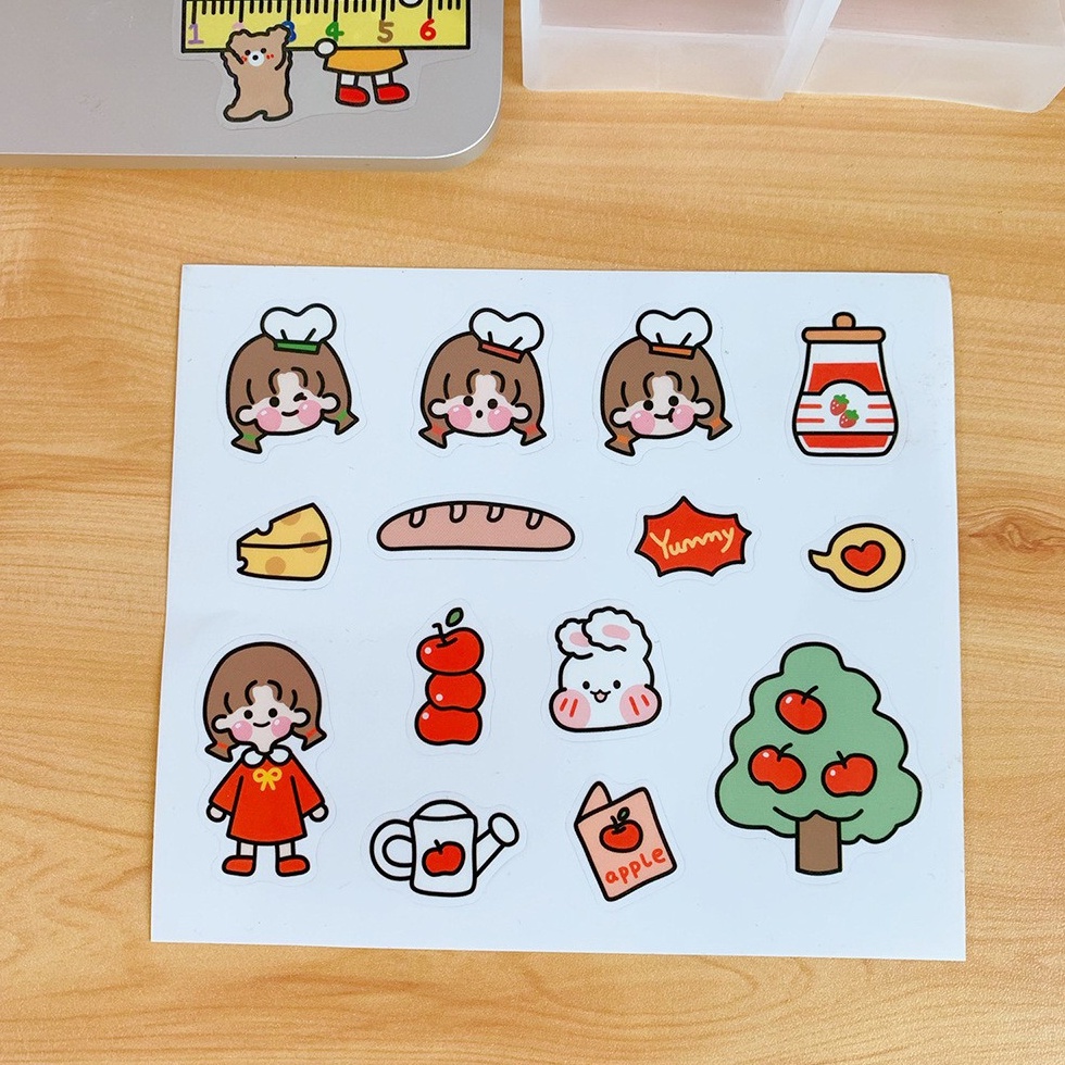 Hình dán sticker cô gái dễ thương hàn quốc tay tự làm niêm phong nhãn dán điện thoại di động trang trí sổ, hộp kệ mỹ phẩmKích thước: 12.8-14.7 cm