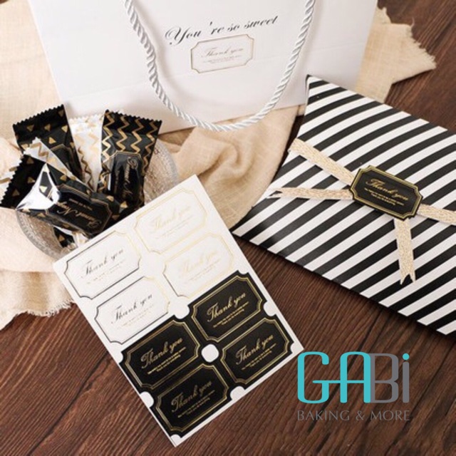 Nhà cửa & Đời sống > Dụng cụ nhà bếp > Dụng cụ nướng & trang trí bánh || Sticker Thank you vuông nhũ vàng (8 miếng/bảng)Còn hàng