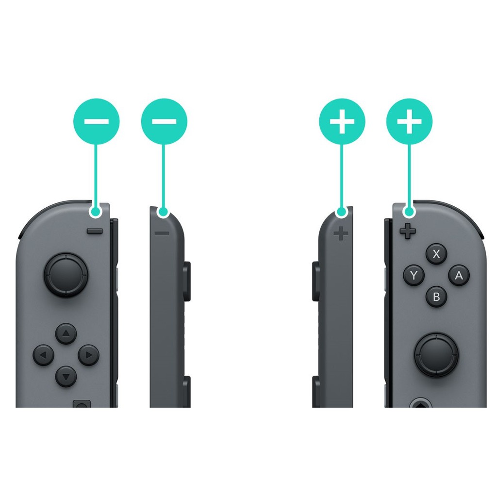 + Dấu "+" và "-" rõ ràng, nhắc nhở bạn không kết nối sai dây đeo strap và joycon