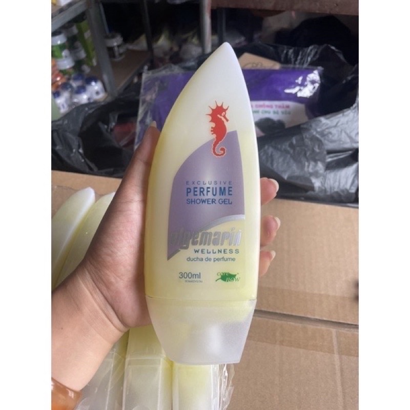-Sữa tắm cá ngựa Algemarin Perfume 300ml (Đức) là một sản phẩm sữa tắm sang trọng chứa các sợi protein để bảo vệ và chăm sóc làn da của bạn, cho bạn cảm giác tươi mát, thư thái sau khi tắm. Độ pH cân bằng. Mùi thơm nhẹ nhàng nhưng bền bỉ, quyến rũ, mang đến bạn phong cách quý phái, sang trọng suốt cả ngày làm việc.