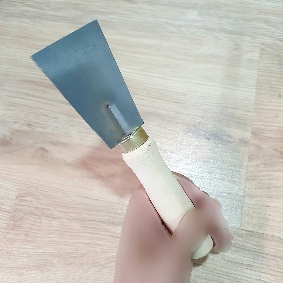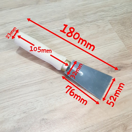 - Cán gỗ lưỡi thép cứng cáp bền bỉ, ứng dụng nhiều cho việc thi công vách, tường nhà như: lấy sơn rơi vãi trên cửa kính, sàn nhà hoặc tháo giấy dán tường.
