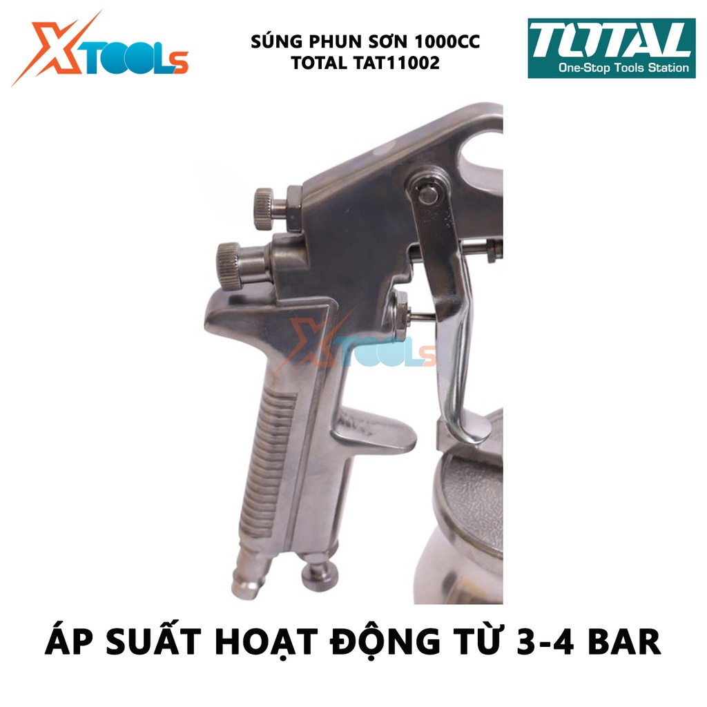 Súng phun sơn Total TAT11002 máy phun sơn cầm tay Đầu vòi 1.5mmÁp lực 3-4bar(43.5-58psi)Mức tiêu thụ 4.2-7.1cfm [XTOOLs]