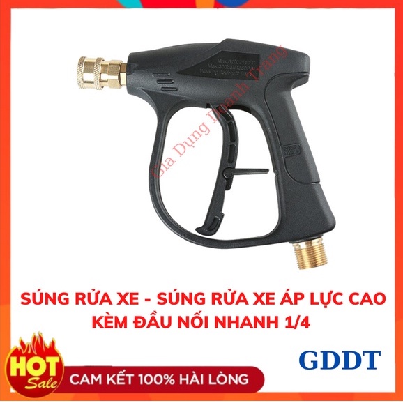 GIỚI THIỆU SẢN PHẨM- Súng rửa xe áp lực cao gắn đầu nối nhanh 1/4 inch. Ren lắp dây áp lực 22 và 14mm đầu tròn