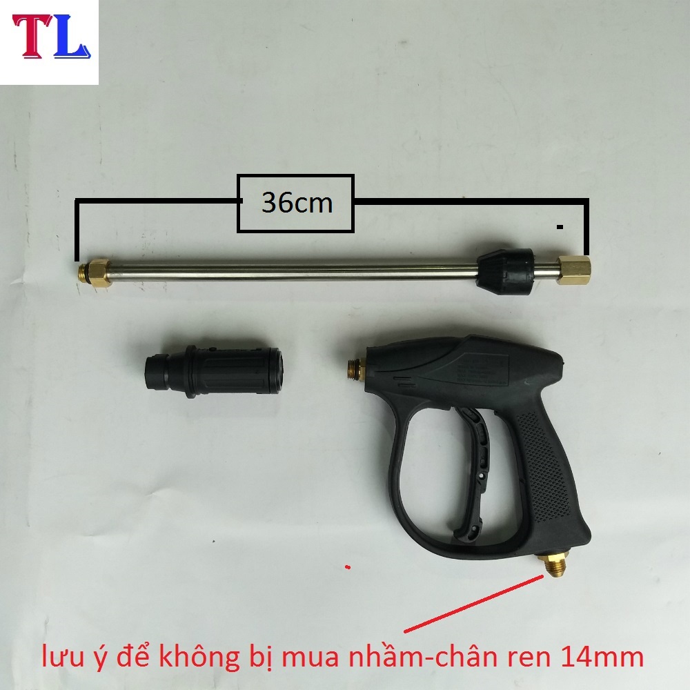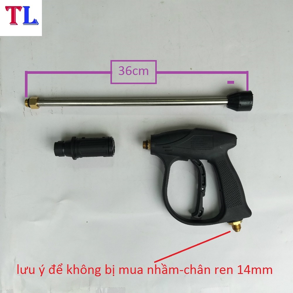 Súng rửa xe áp lực gia đình + cần nối 36cm ❤️FREESHIP❤️ súng đen ren ngoài 14mm và 22mm