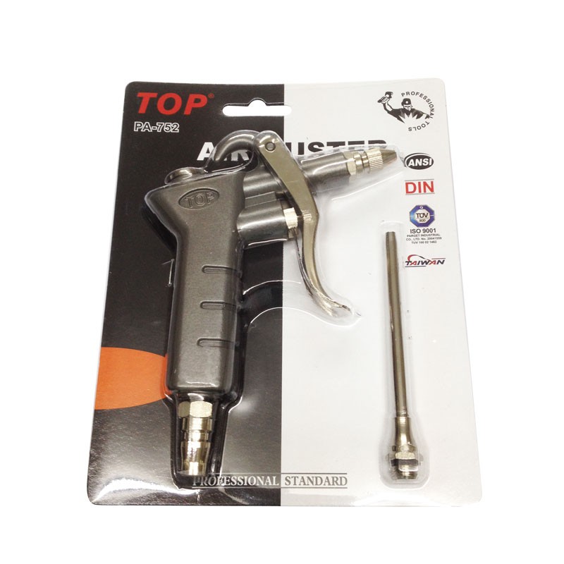 Súng xịt hơi 2 đầu kiểu Nhật, thương hiệu TOP được sản xuất tại Đài Loan, và lắp ráp theo dây chuyền công nghệ của Châu Âu.Sản phẩm được tích hợp sử dụng cả 2 đầu (ngắn 30mm, và dài 100mm), đặc biệt đầu ngắn có thể điều chỉnh được lượng khí thổi ra ngoài để phù hợp cho từng công việc khác nhau.