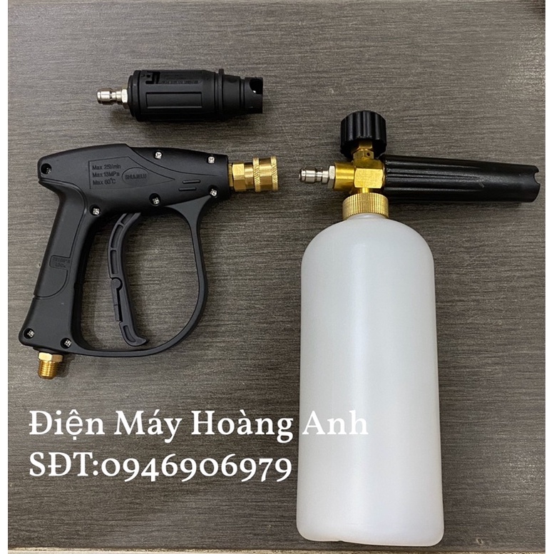 Bộ súng xịt rửa và bình tạo bọt tuyết kèm bộ khớp nối nhanh ren 14mm cho máy rửa xe áp lực cao,máy phun xịt áp lực cao
