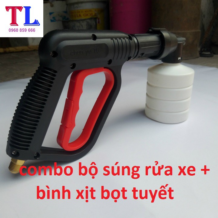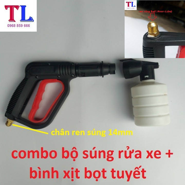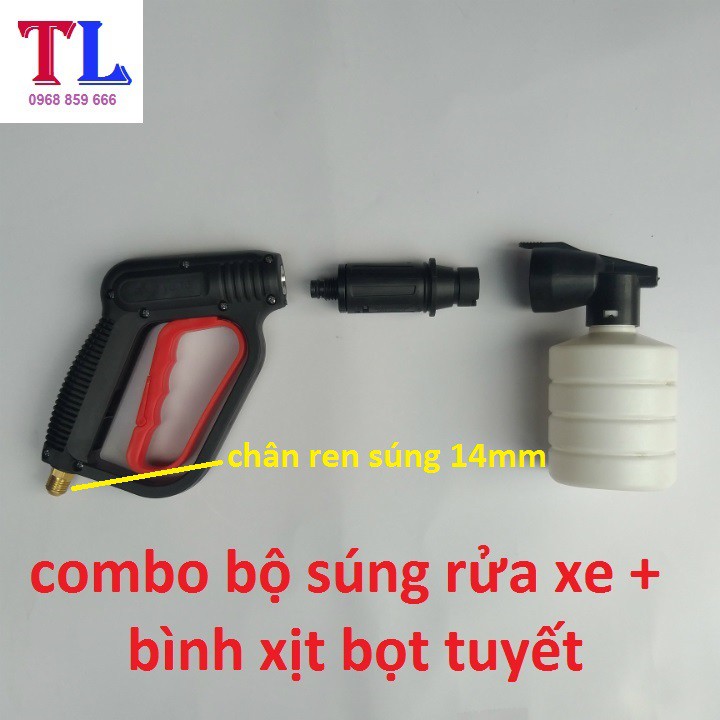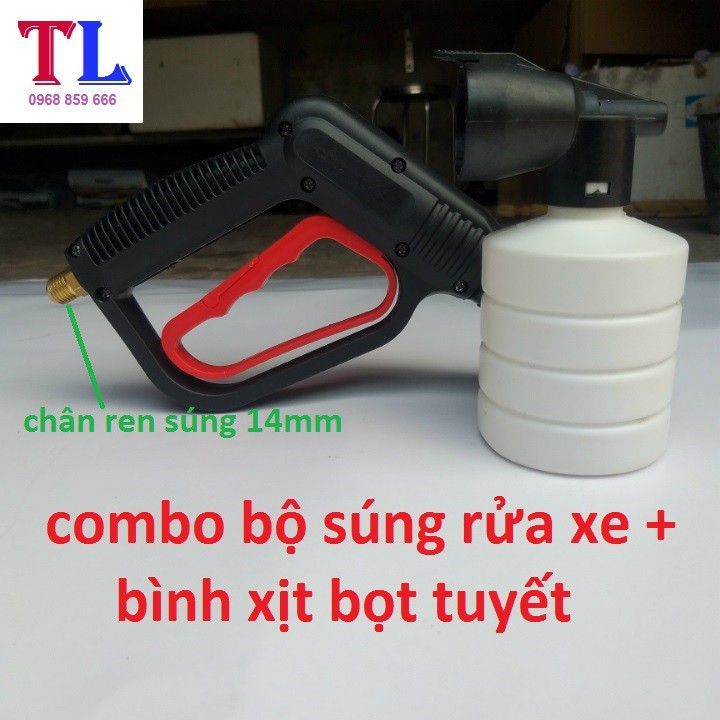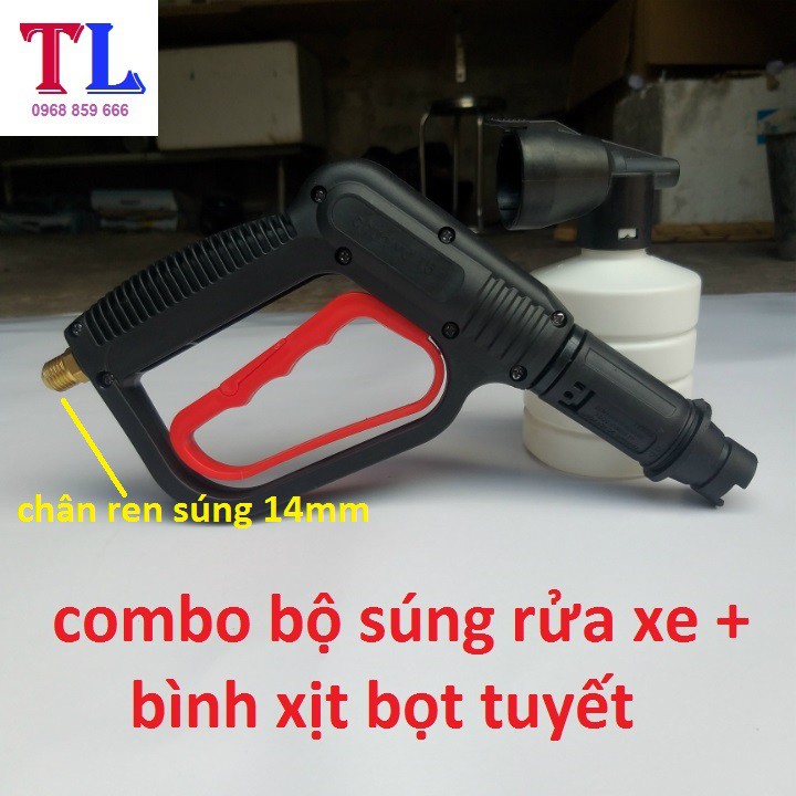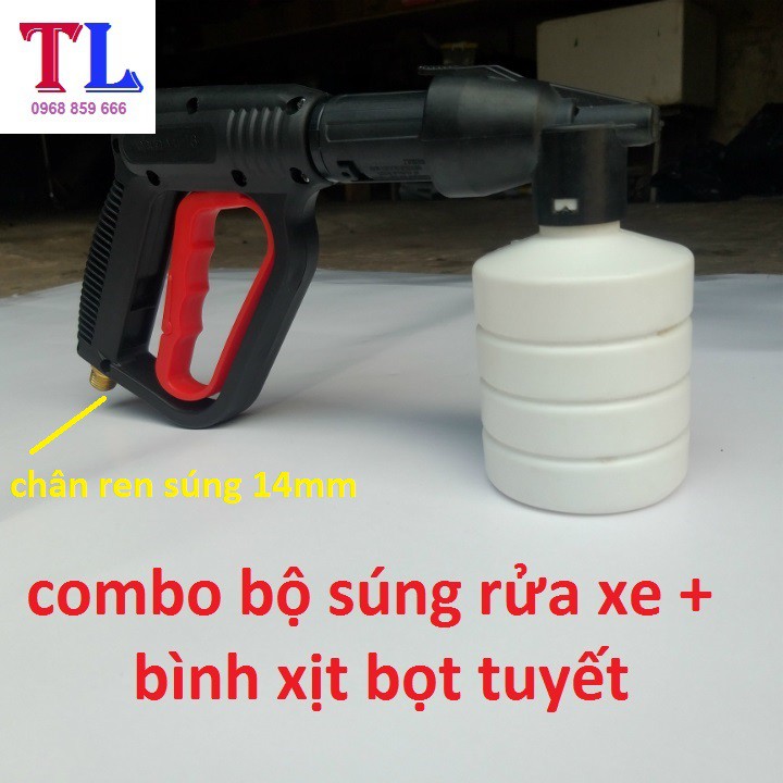 súng xịt rửa xe áp lực cao + Bình tạo bọt tuyết xà bông gắn cho máy rửa xe áp lực cao [bình bọt 0.5L + cò đỏ 14mm ]