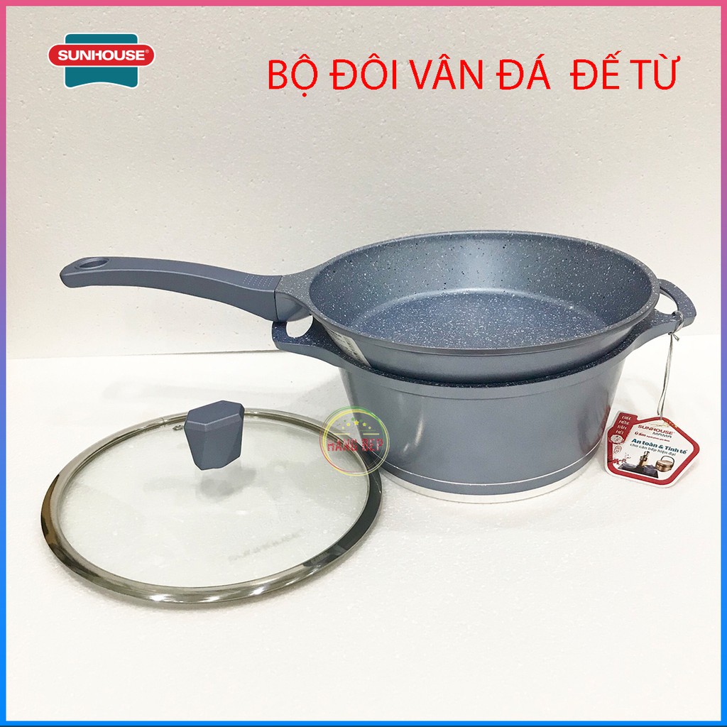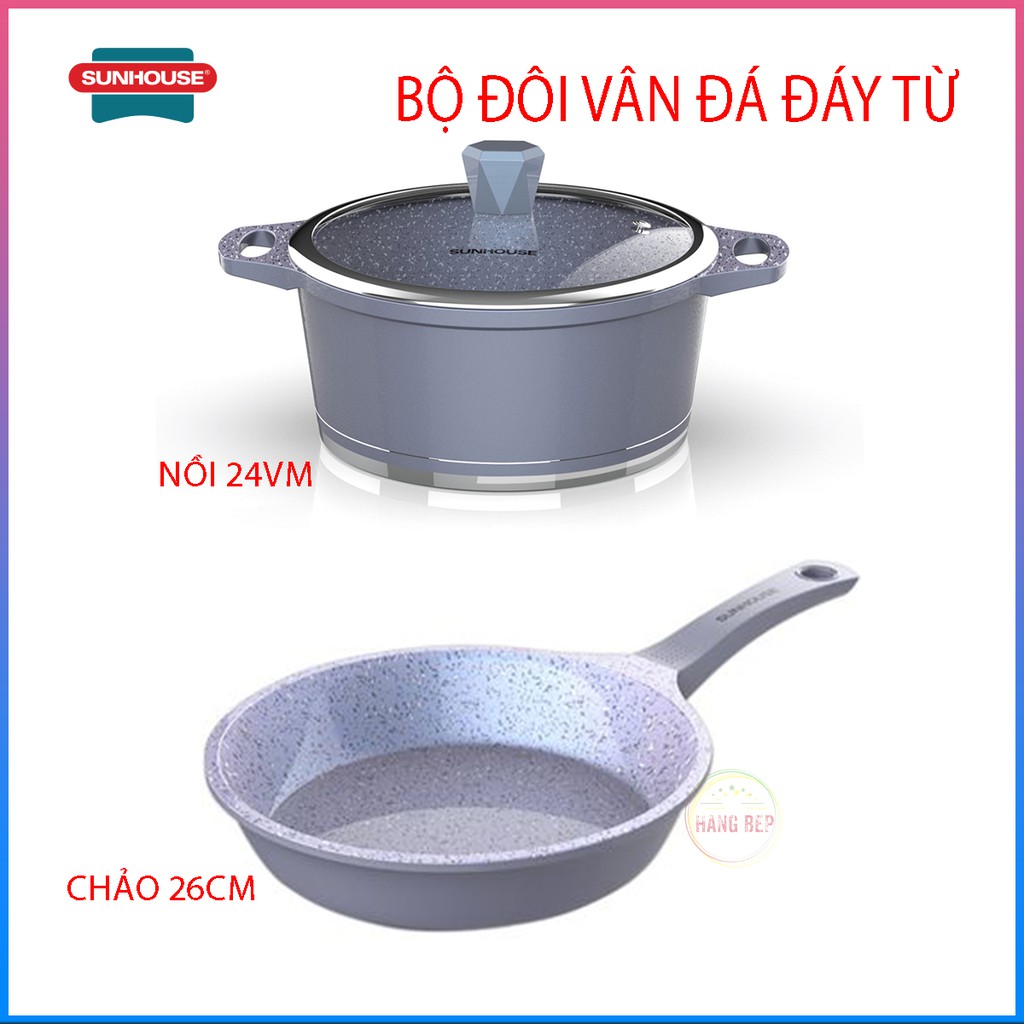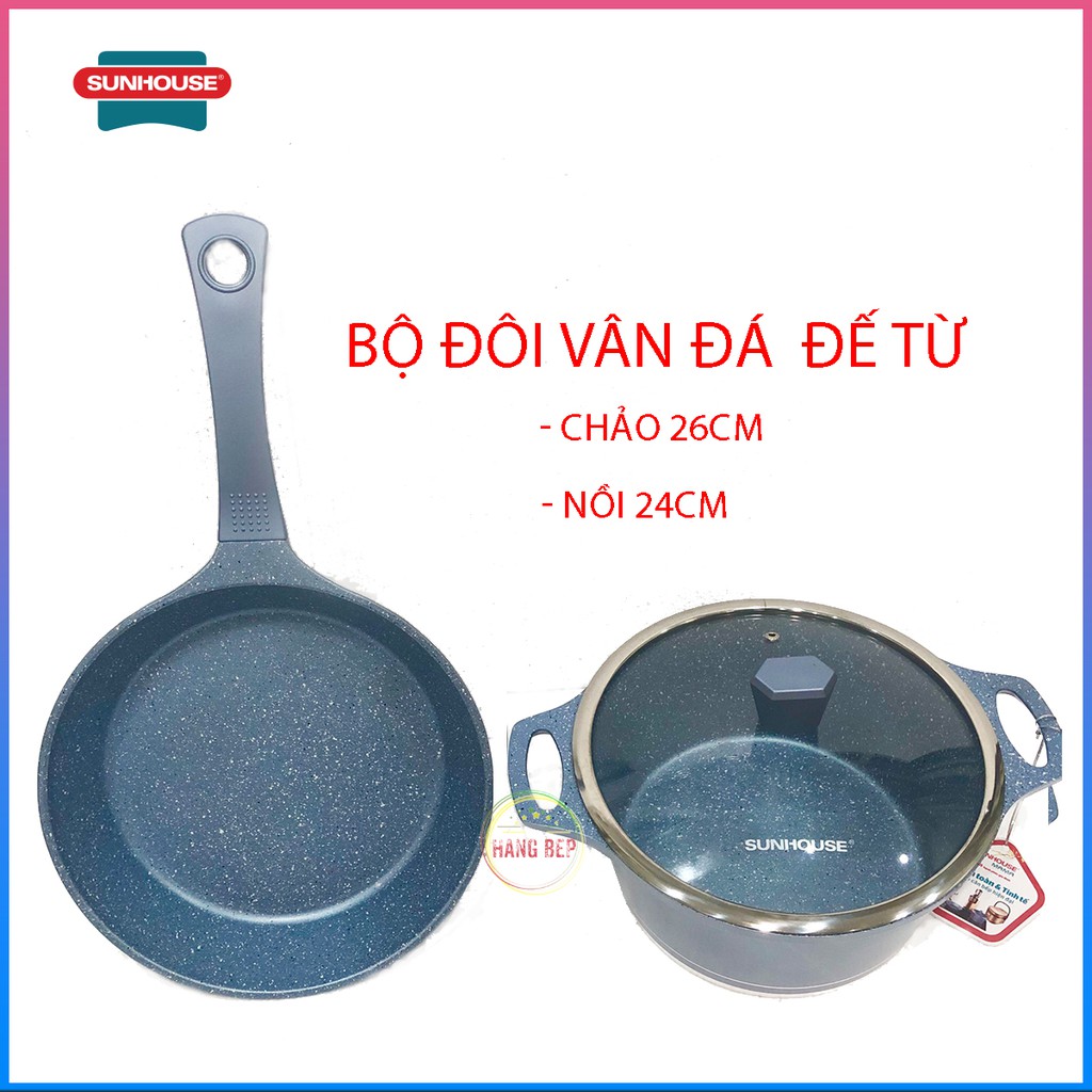 Sunhouse Combo Bộ đôi nồi chảo vân đá đế từ 24cm & 26cm giá rẻ
