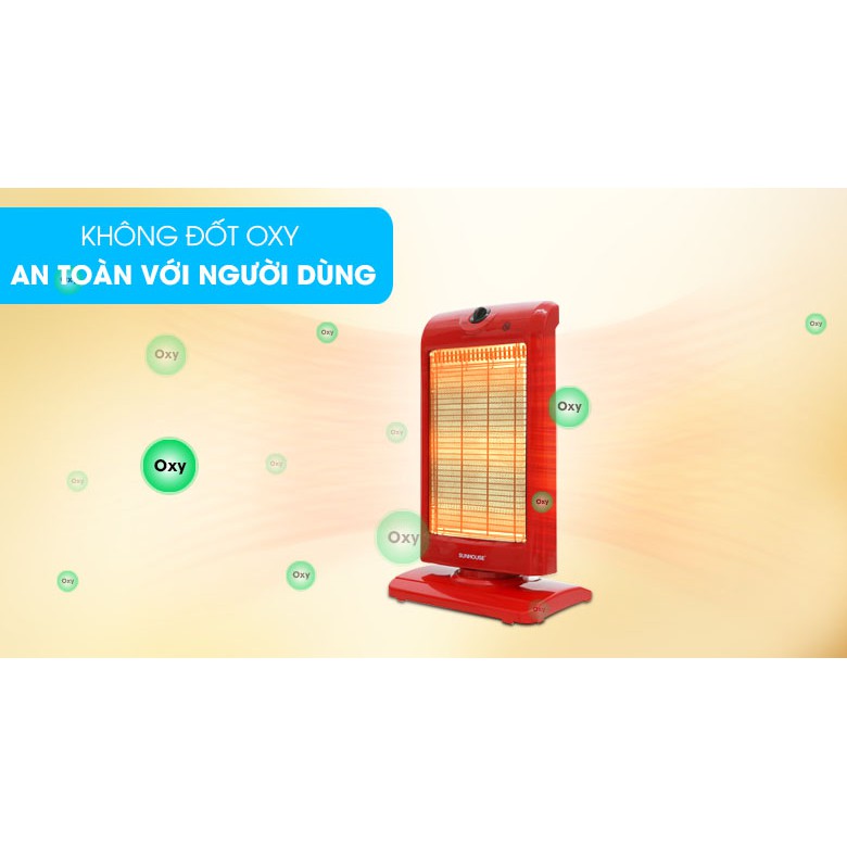 SUNHOUSE SHD7016 sử dụng đèn hồng ngoại, làm ấm cực nhanh, độ bền vượt trội, chống chói mắt hiệu quả và không đốt cháy oxy nên không gây khó thở hay khô da khi dùng.