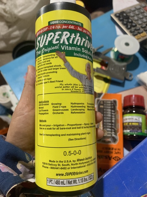 SUPER THRIVE hàng Mỹ 480ml– Kích thích tăng trưởng cho lan cực tốt- Hiệu quả từng giọt*Xuất xứ: Hàng của Mỹ, được sản xuất từ năm 1940.