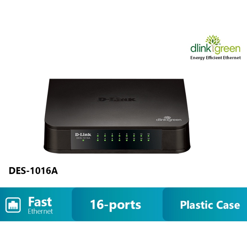 16 cổng Fast Ethernet tốc độ caoTính năng tiết kiệm năng lượng cải tiến từ D-Link