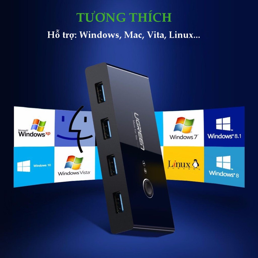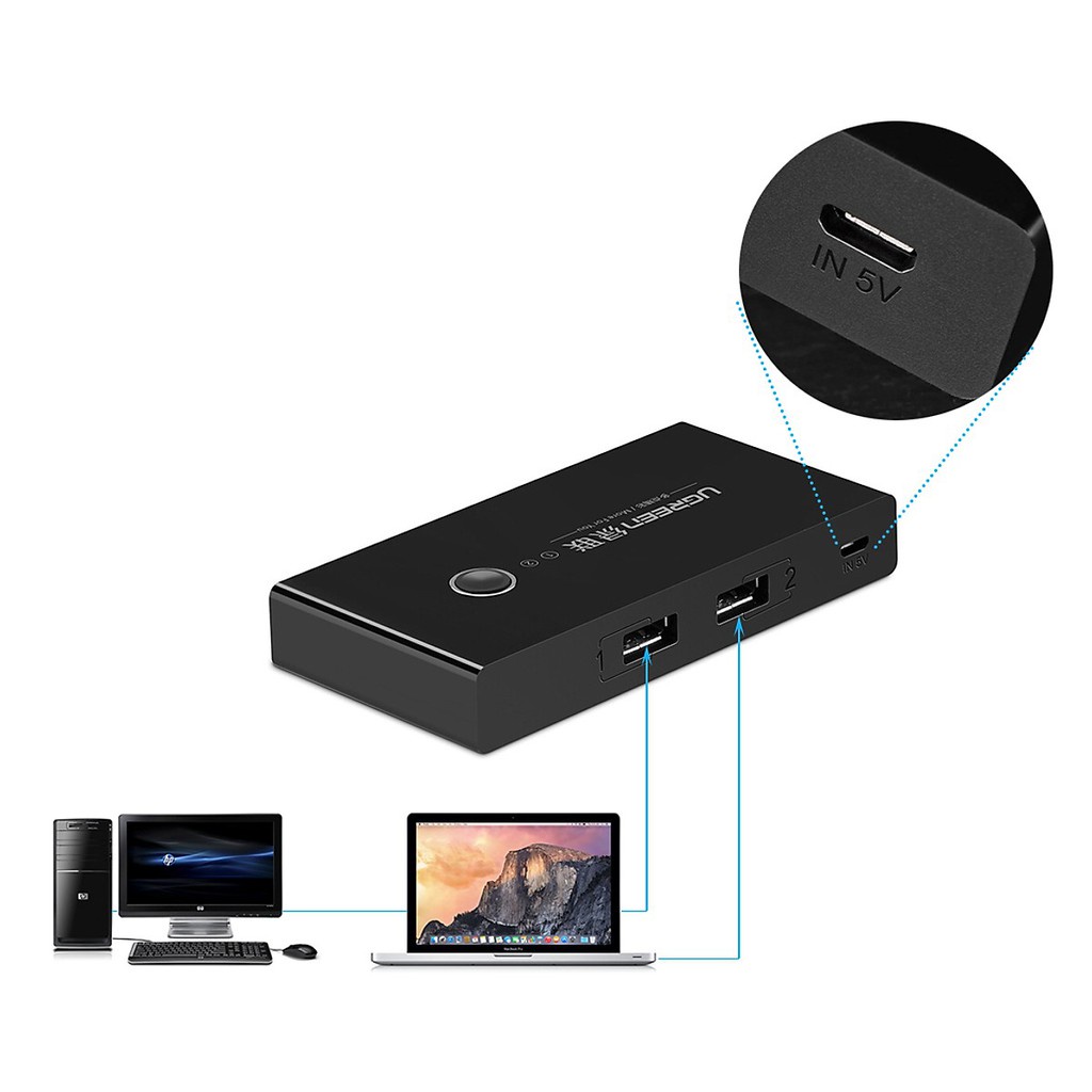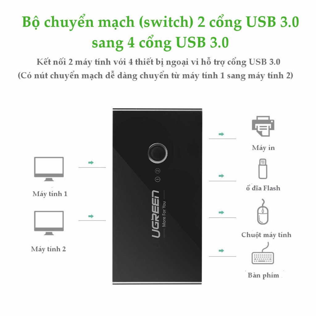 Bộ switch chia cổng USB 3.0 và USB 2.0 2 vào 4 ra UGREEN US216