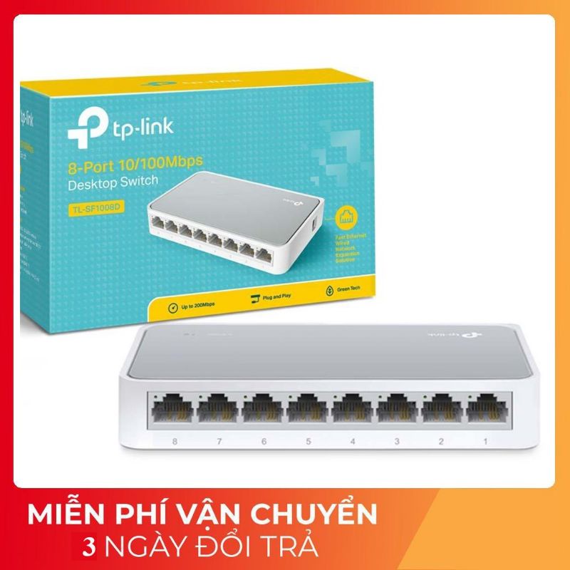 Switch chia mạng Tp-Link 8 Port + 2 Uplink 10/100MbpsThiết bị TL-SF1008D là bộ chia tín hiệu Ethernet tốc độ cao dành cho SOHO (Văn phòng nhỏ/Văn phòng gia đình) hoặc một nhóm người dùng. Tất cả 8 cổng này đều hỗ trợ chuyển đổi MDI/MDIX, giúp bạn không còn lo lắng về vấn đề dây cáp lằng nhằng, bạn chỉ cần cắm vào và sử dụng. Bên cạnh đó, với công nghệ sử dụng năng lượng tiên tiến, thiết bị TL-SF1008D có thể giúp bạn tiết kiệm điện năng tiêu thụ, tạo ra một giải pháp thân thiện với môi trường cho hệ thống mạng trong nhà hay trong văn phòng của bạn.