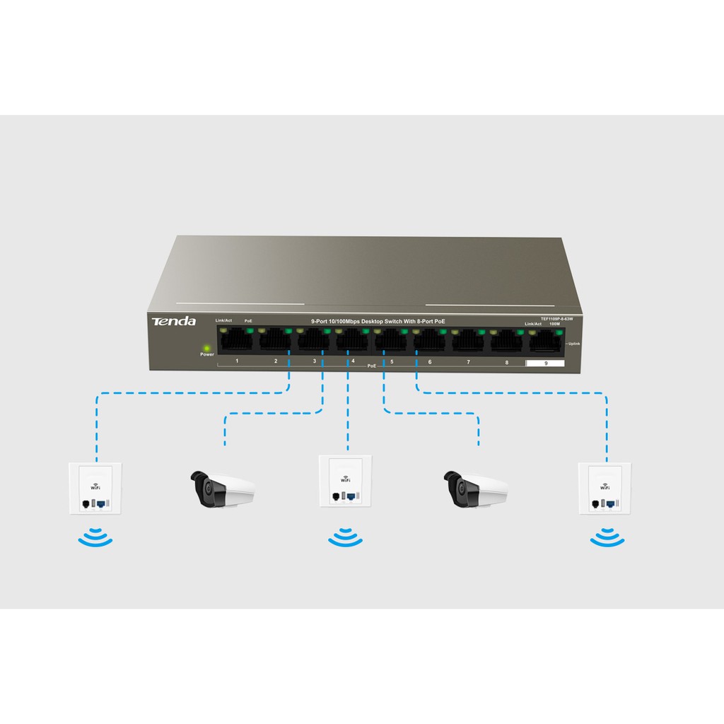 Switch để bàn Tenda 9 cổng TEF1109P 10/100Mbps với 8 cổng PoE