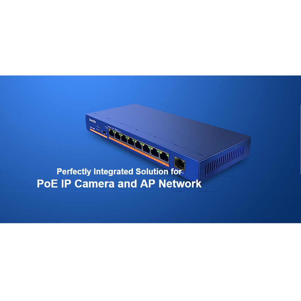>> Hỗ trợ cổng uplink Ligthning-proof, Ports 1 ~ 8 là PoE có khả năng, năng lượng đầu ra của một cổng lên đến 40W.>> khoảng cách lên đến 150m (tiêu chuẩn Cat.5e hoặc Cat.6).