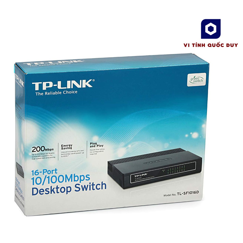 Switch Chia Mạng TP-Link TL-SF1016D 16 PortSwitch chia mạng 16 Port TP-Link TL-SF1016D là một sản phẩm thế hệ mới nổi bật với công nghệ sử dụng năng lượng tiên tiến mới nhất. Thiết bị này có thể giúp người dùng mở rộng dung lượng mạng với một lượng điện năng tiêu thụ rất ít . Các vi mạch bên trong sẽ tự động điều chỉnh lượng tiêu thụ điện năng theo trạng thái liên kết và chiều dài dây cáp để hạn chế lượng khí thải carbon trong hệ thống mạng của bạn.