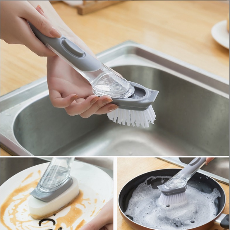 Nhà cửa & Đời sống > Dụng cụ chăm sóc nhà cửa > Bàn chải vệ sinh || [Tặng kèm 2 Đầu Cọ] Combo Bộ Vệ Sinh Cọ Rửa Nhà Bếp Có Bình Đựng Xịt Xà Phòng Đa Năng 2in1 Cực Tiện LợiCòn hàng