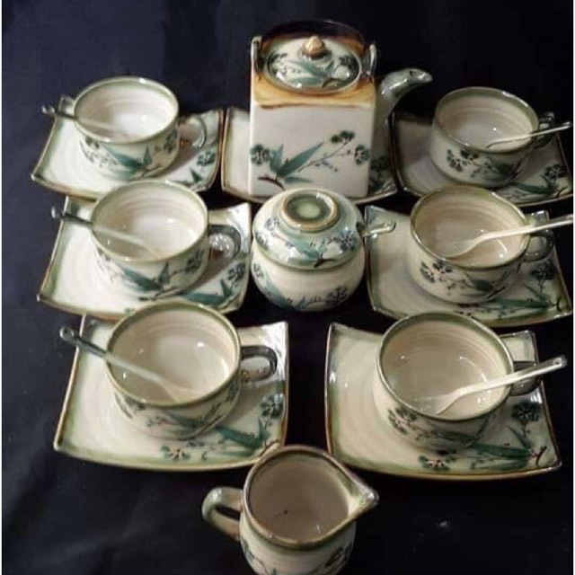 Bộ gồm 1 ấm, 6 tách, 7 đĩa kê, 6 thìa sứ