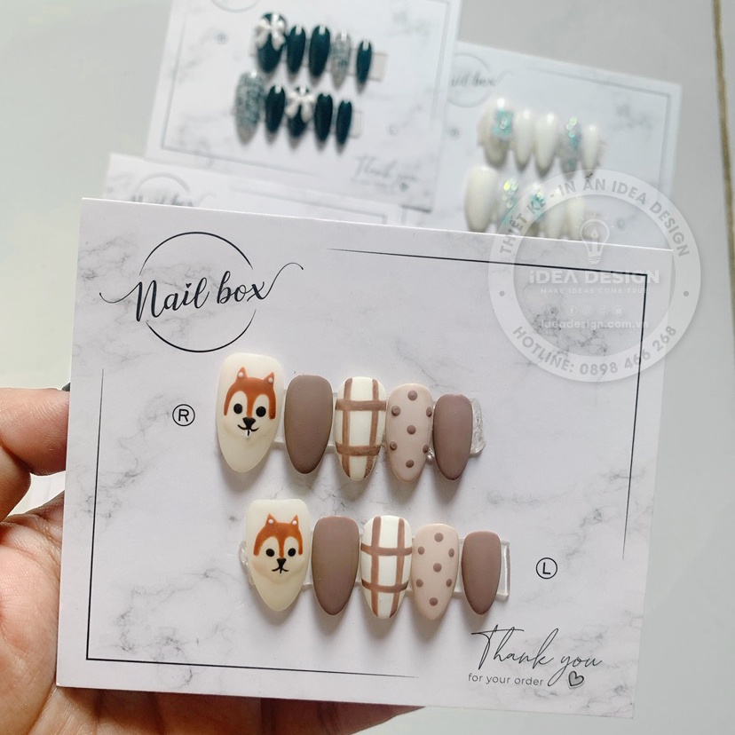 - Tag Nailbox có cán màng mờ 2 mặt, giúp tag dày dặn, sang trọng và hạn chế thấm nước.
