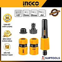 Bộ khớp 5 chi tiết nối nhanh ống nước tưới cây, cấp nước cho máy rửa xe INGCO HHCS05122 kết nối với ống nhựa dẻo PVC phi 16mm, 18mm