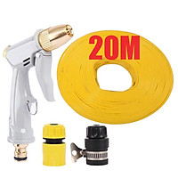 Bộ dây vòi xịt nước rửa xe, tưới cây . tăng áp 3 lần, loại 20m 206701-3 đầu đồng, cút đồng, + tặng đai