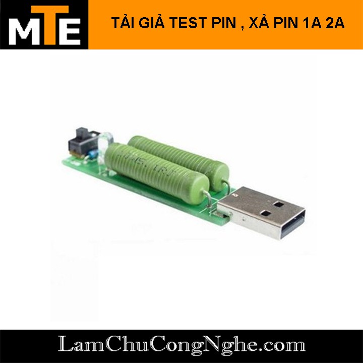 Sản phẩm bao gồm 1 tải giả test pin , xả pin 1A, 2ATải giả test pin , xả pin 1A, 2A sử dụng như một thiết bị tải với công suất tối đa 5W cho dòng ra 1A và 10W cho dòng ra 2A.