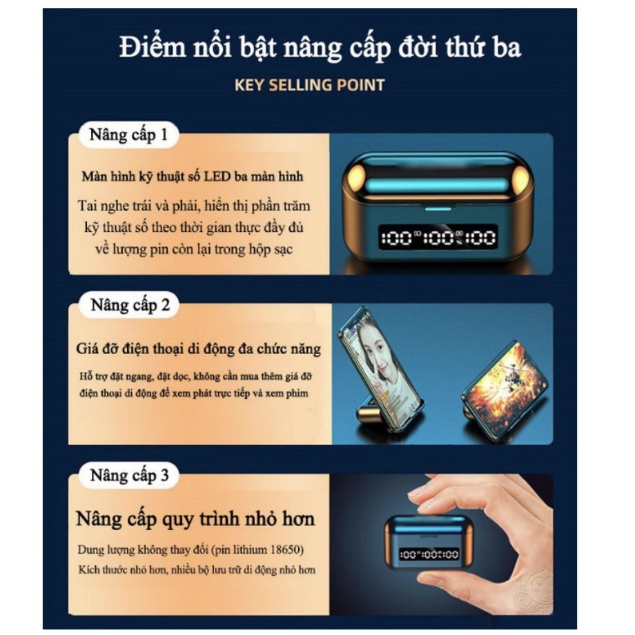 Tai nghe bluetooth không dây nhét tai hộp đựng tự động nạp sạc pin Graphene 9D giảm ồn, tích hợp sạc dự phòng