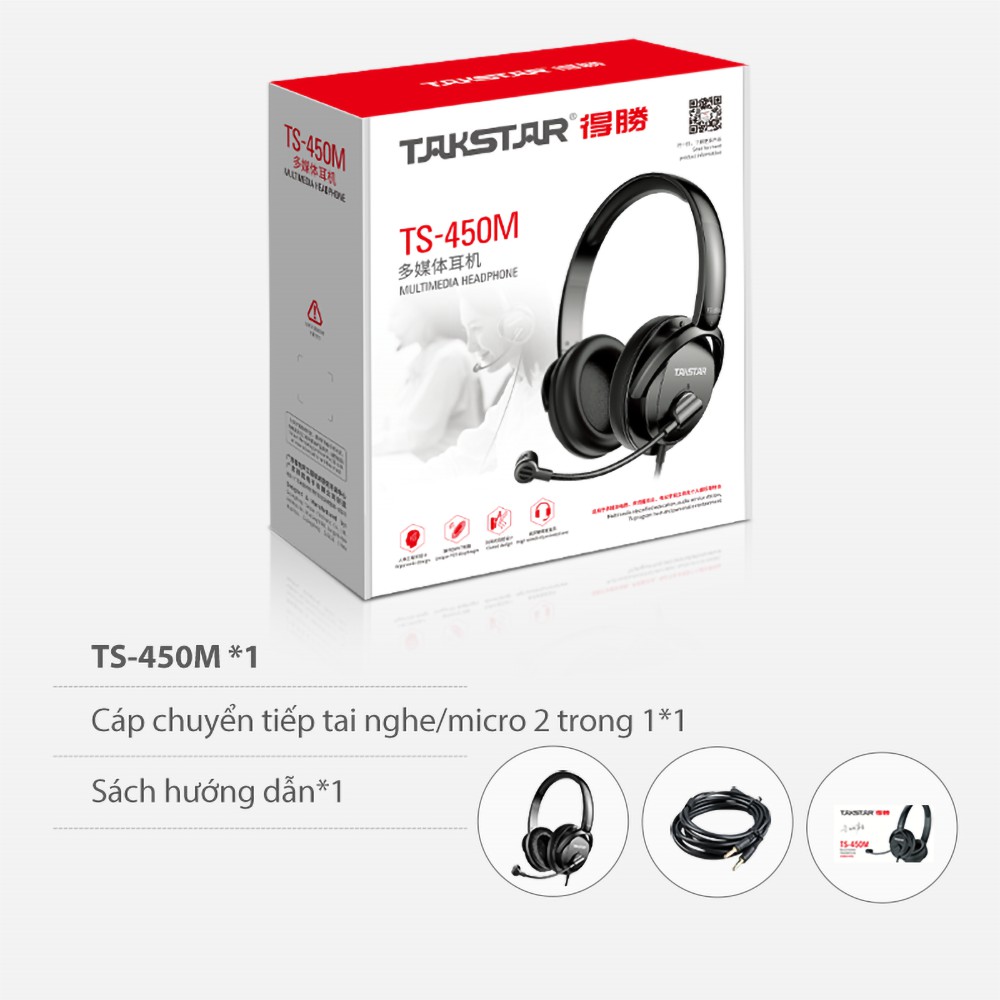 1 *** GIỚI THIỆU TAI NGHE ĐA PHƯƠNG TIỆN TAKSTAR TS-450MTai nghe có mic Takstar TS-450M được cho là thiết bị tiêu chuẩn phục vụ giáo dục đa phương tiện hay streaming chơi game chuyên nghiệp bởi khả năng thu nhận âm thanh rõ ràng, kiểm soát tạp âm tốt.