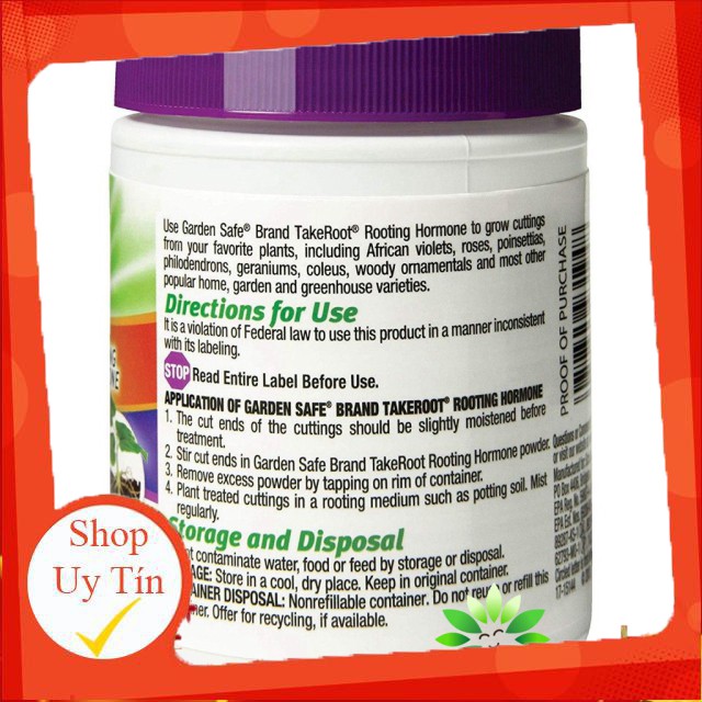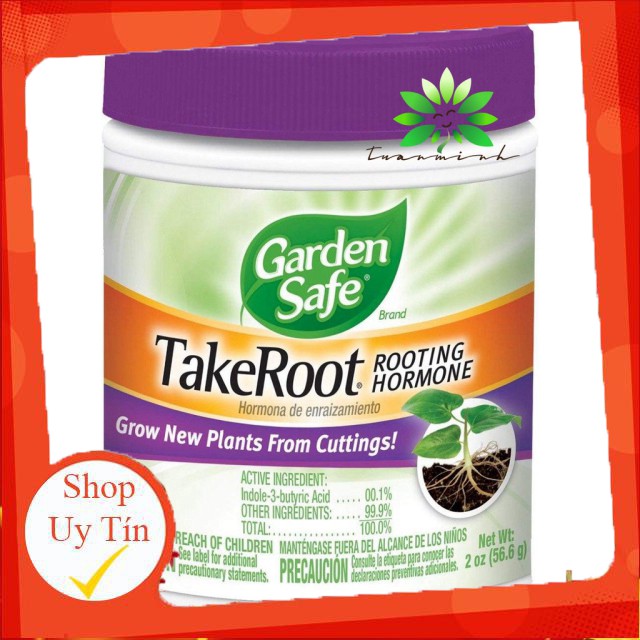 Garden Safe Brand TakeRoot là một chế phẩm hormone auxin thực vật (IBA) được phối trộn theo công thức riêng, có tác dụng siêu kích thích ra rễ cây từ cành giâm của hầu hết các loại cây trồng phổ biến hiện nay. Đây là một cách dễ dàng để nhân giống và chia sẻ các chủng loại cây ưa thích mà bạn có với mọi người.
