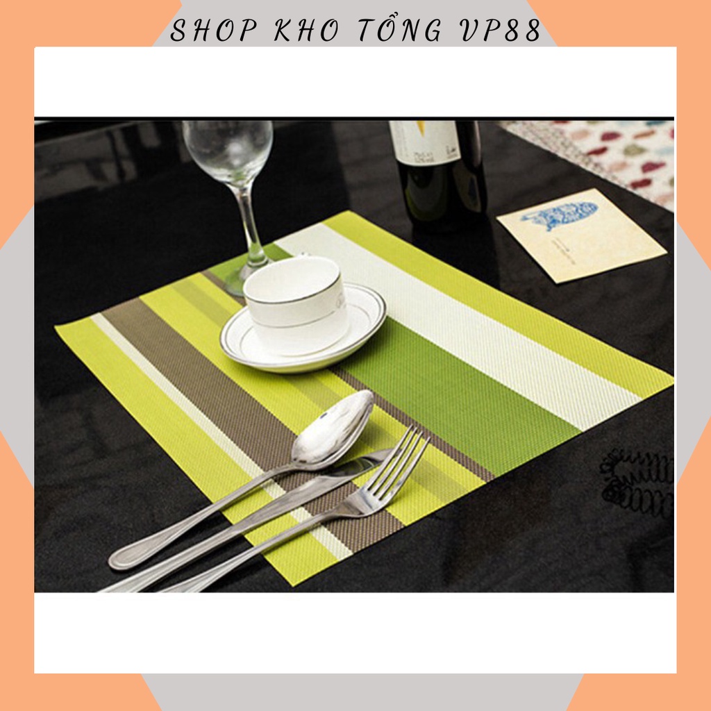 Tấm lót bàn ăn, placemat : miếng thảm trải bàn ăn PVC cách nhiệt, cao cấp, chống trượtSản phẩm thích hợp sử dụng trang trí cho bàn trà; bàn ăn; bàn làm việc tại gia đình; nhà hàng; khách sạn… cho không gian thêm phần sinh động; trang nhã và sang trọng.