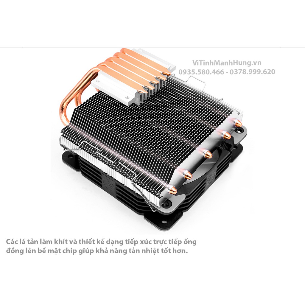- Các lá tản làm khít và thiết kế dạng tiếp xúc trực tiếp ống đồng lên bề mặt chip giúp khả năng tản nhiệt tốt hơn.