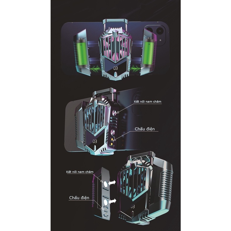 X3A sử dụng cho tất cả các dòng điện thoại có kích thước từ 4,7-7,5 inch (67-95mm)Quạt tản nhiệt 2 PIN SẠC sò lạnh cho điện thoại X3A siêu mát: Tản nhiệt nước, công nghệ làm mát sò lạnh nhanh chóng hạ nhiệt độ điện thoại.