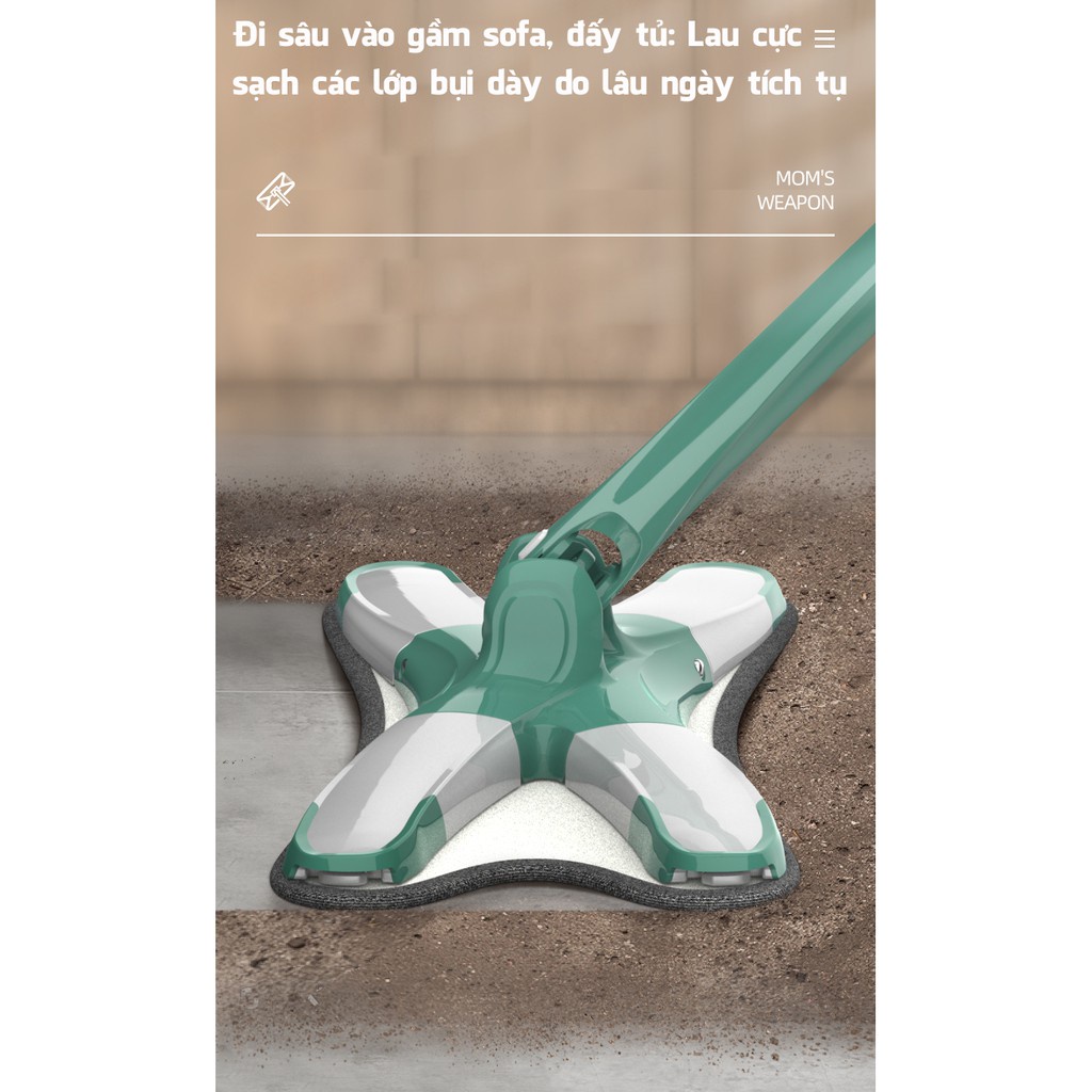 Cây lau nhà đa năng tích hợp vắt trên thân thông minh đầu lau xoay 360 độ tiện ích với khả năng lau sạch sàn nhà một cách nhanh chóng và nhẹ nhàng, phù hợp với mọi loại bề mặt sàn như sàn gạch, sàn gỗ, sàn đá, tường ốp gạch và mặt kính, phù hợp với mọi không gian và diện tích nhà có thảm lau sợi vải đa tầng mềm mịn thấm hút tốt lấy sạch từ tóc đến bụi mịn. được thiết kế thông minh và cực kỳ gọn gàng giúp tiết kiệm không gian bảo quản đặc biệt là nhà chung cư hoặc các căn nhà có không gian hạn chế.HƯỚNG DẪN SỬ DỤNG: Cây lau nhà thông minh đa năng