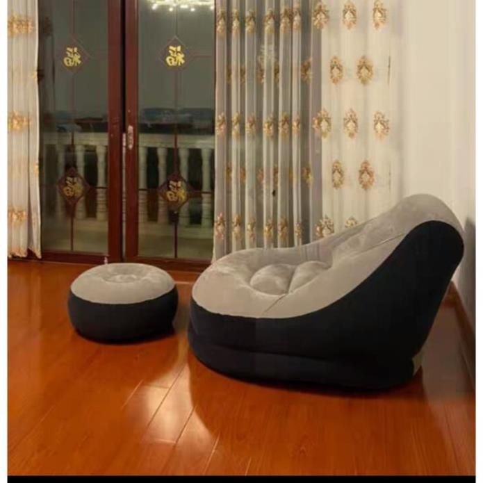 [ Tặng Bơm ] Ghế Hơi Tựa Lưng Bọc Nhung Mềm Mịn Êm Ái - Đệm Hơi Lót Chân Cao Cấp - Ghế Sofa Hơi- Hoàng Thiên