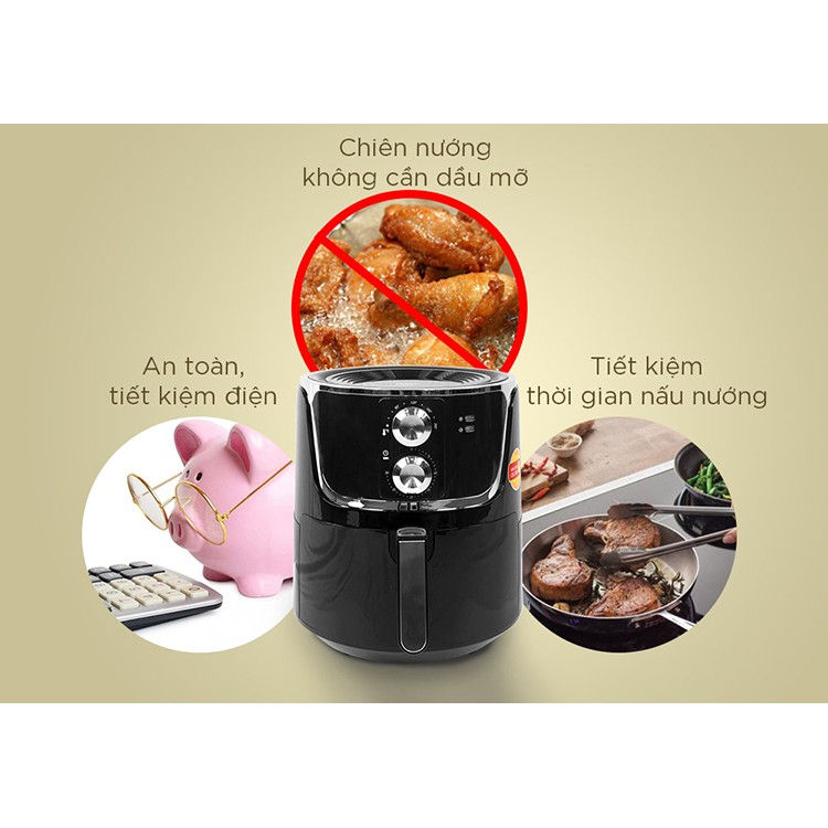 - Công suất lớn giúp chiên rán và làm chín khối lượng thực phẩm lớn và những thực phẩm lâu chín nhất trong một khoảng thời gian ngắn hơn, giúp các bà nội trợ thấy thoải mái và nhẹ nhàng hơn nhiều so với cách nấu nướng thông thường,